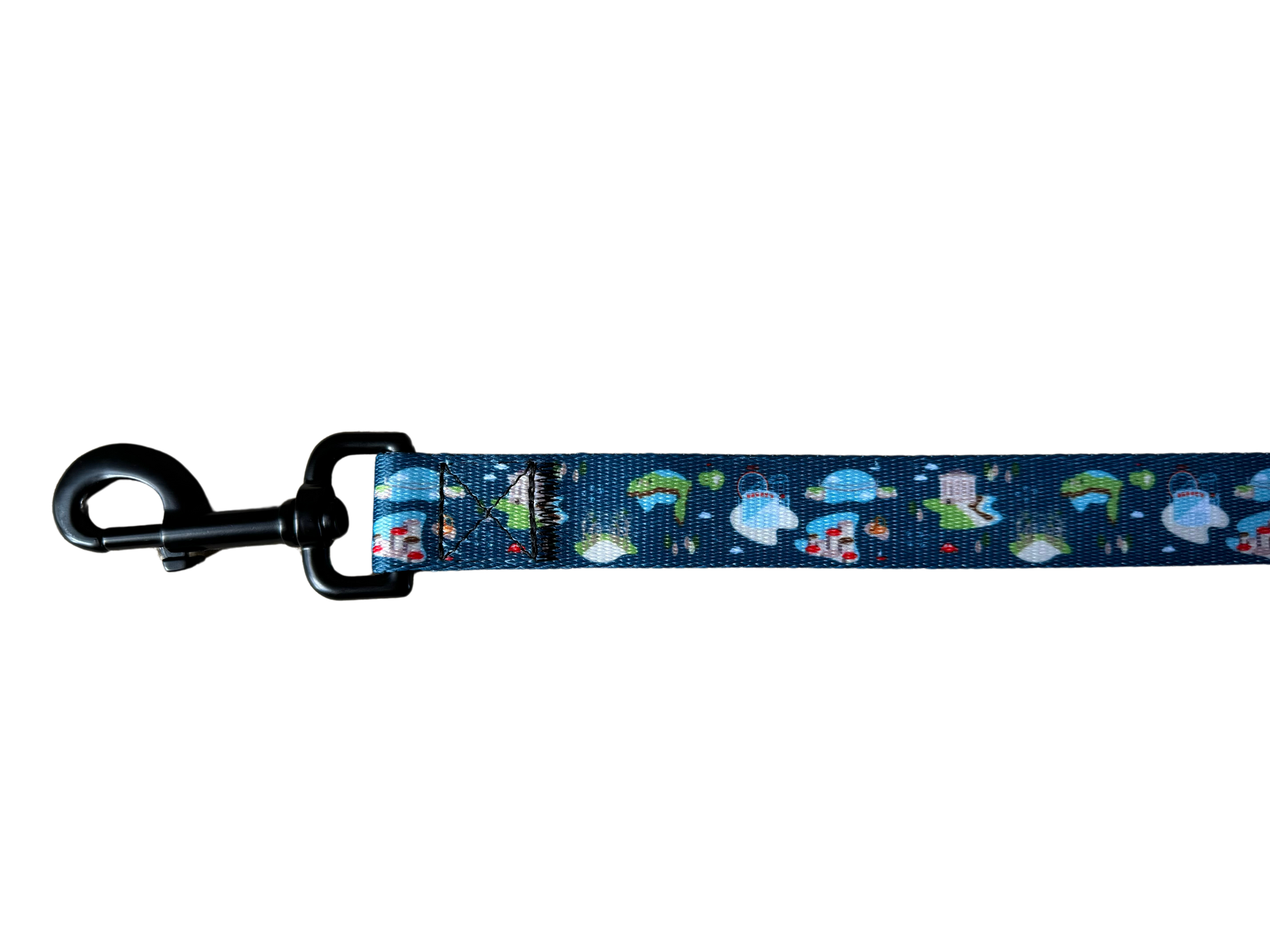 Fabric is Polyester. Hardware is metal snap hook and iron ring. Logo is PVC.